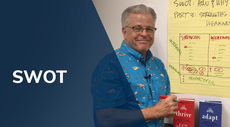 Take a deep dive into your internal Strengths and Weaknesses, and think through your Opportunities and Threats in your current market. This builds your strategy to leverage your advantages in the market.